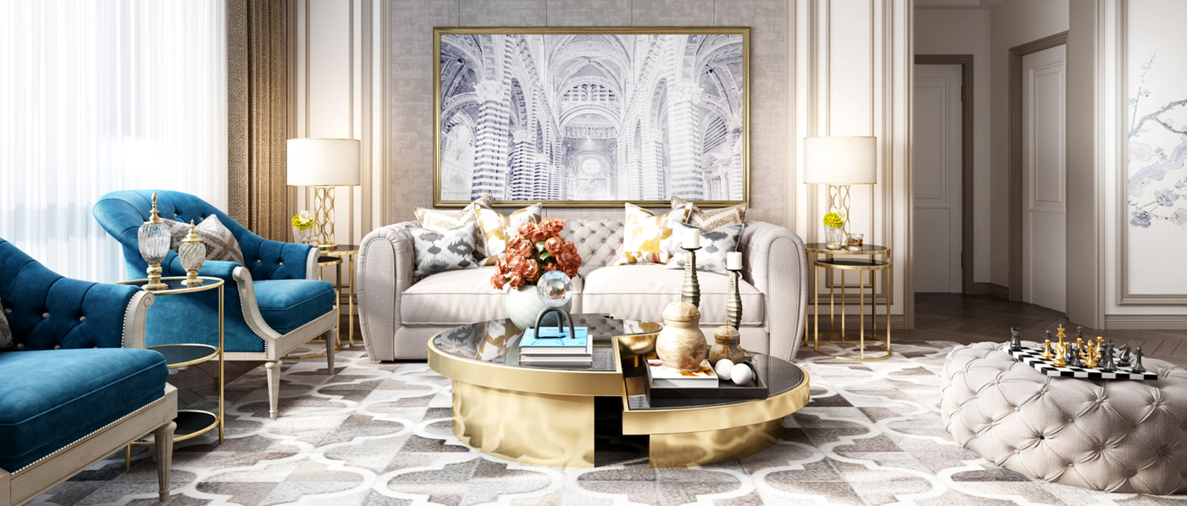 奢華精致的空間,承載著愜意與浪漫,將空間尺度感、材料品質(zhì)感與藝術(shù)感合而為一,一切都恰到好處,浪漫、繁華與優(yōu)雅,才是高品質(zhì)生活本來該有的樣子