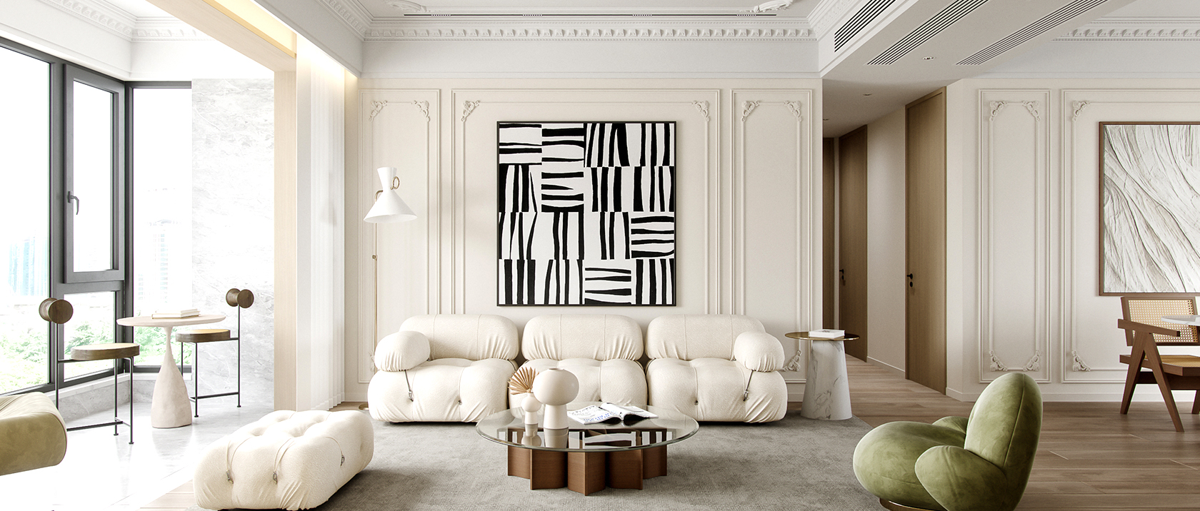 把風(fēng)格、線條以及顏色共同糅合,超越時(shí)光的空間搭配,給人寧靜、淡泊、溫柔的感覺,在繁俗的日常中,成為了優(yōu)雅而質(zhì)樸的生活提案。